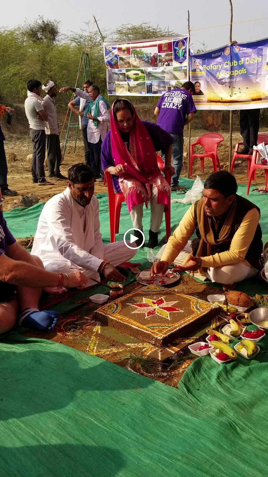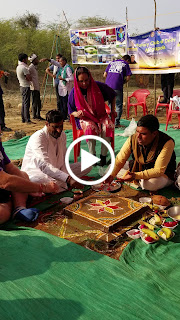 We were welcomed by Dinesh Sharma and others with whom we would be working for the next few days, and inside a colorful reception tent, we saw the place where the havan (fire) would be placed. The priest (pandit) from neighboring village was there to lead us in prayer.